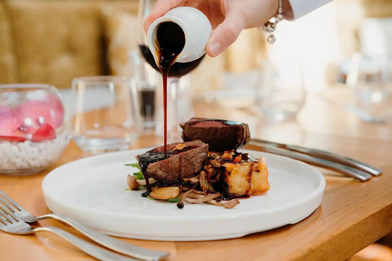 We follow a ‘field to fork’ philosophy and pride ourselves on using local fresh produce sourced from within a 50-mile radius, another reason why we are among the top Hampshire restaurants. Some produce even comes from our own Kitchen Garden, within which we grow a fantastic variety of vegetables, herbs, and even our own fruit, so guests can enjoy a home cooked meal. We are also proud members of the Hampshire Fare, where we consciously source from neighbouring Hampshire suppliers and bringing local communities together. During the warmer months, our award-winning restaurant offers guests to enjoy a relaxed dining atmosphere on our outdoor terrace. The Glasshouse Restaurant is a dog-friendly restaurant in Basingstoke, so your four-legged friend can join you for your meal in the dog-friendly area of the Glasshouse Restaurant or on our beautiful Garden Terrace too!