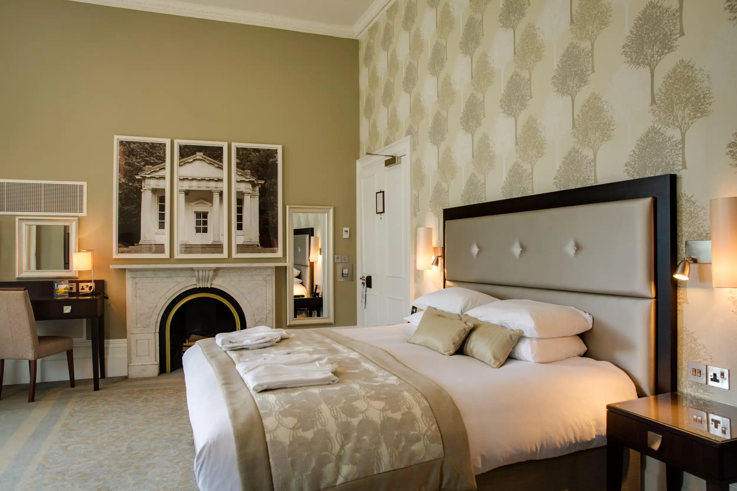 Our Executive Bedrooms have a little more room to relax in. As well as a walk-in shower and separate dressing area, you might also find additional period details such as ornate fireplaces and large windows which frame beautiful views of the grounds. And with a comfortable seating area, complete with a pull-out double sofa bed, these rooms are perfect for families and couples alike.