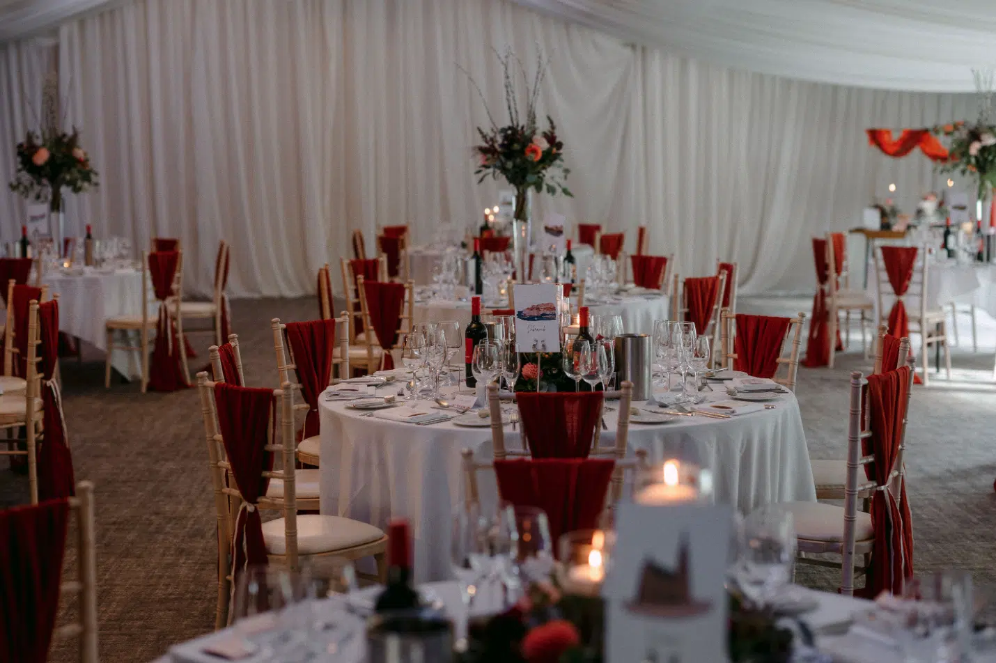 We got married in October and so we went with an autumnal colour scheme. We thought that this scheme would bode well with the grounds and the colours of the leaves at that time of year.