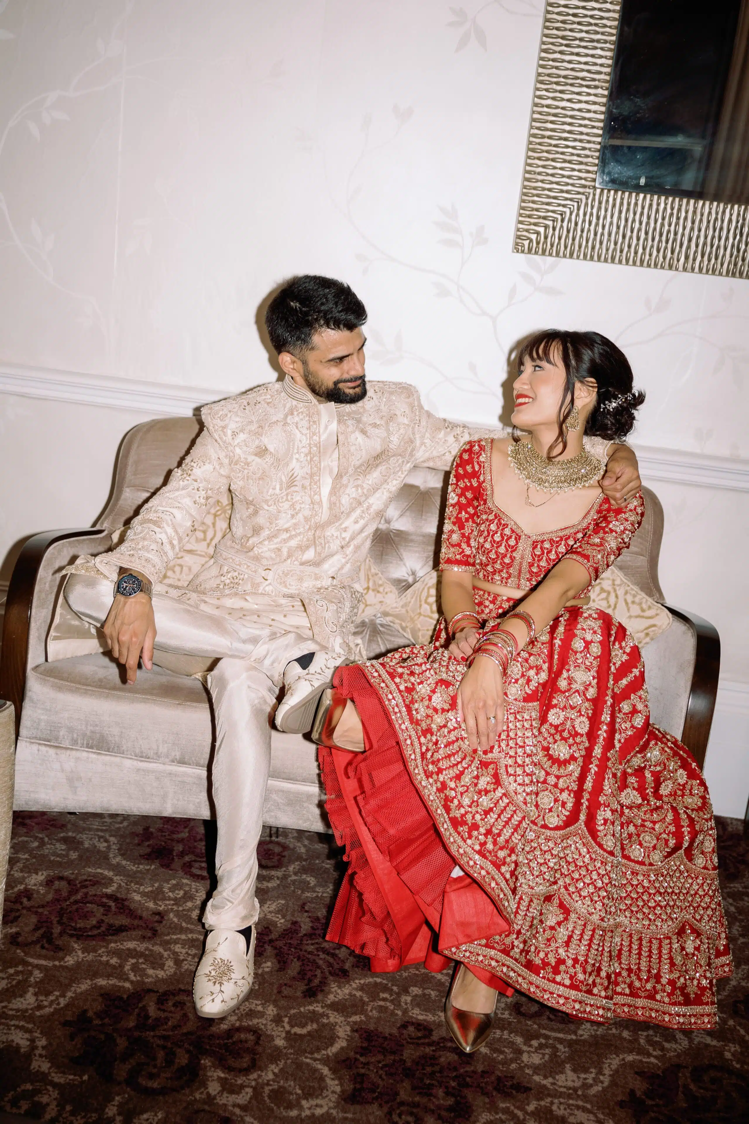 Red and gold are wedding colours in both South and East & Southeast Asian cultures so fitted in perfectly with our fusion wedding.