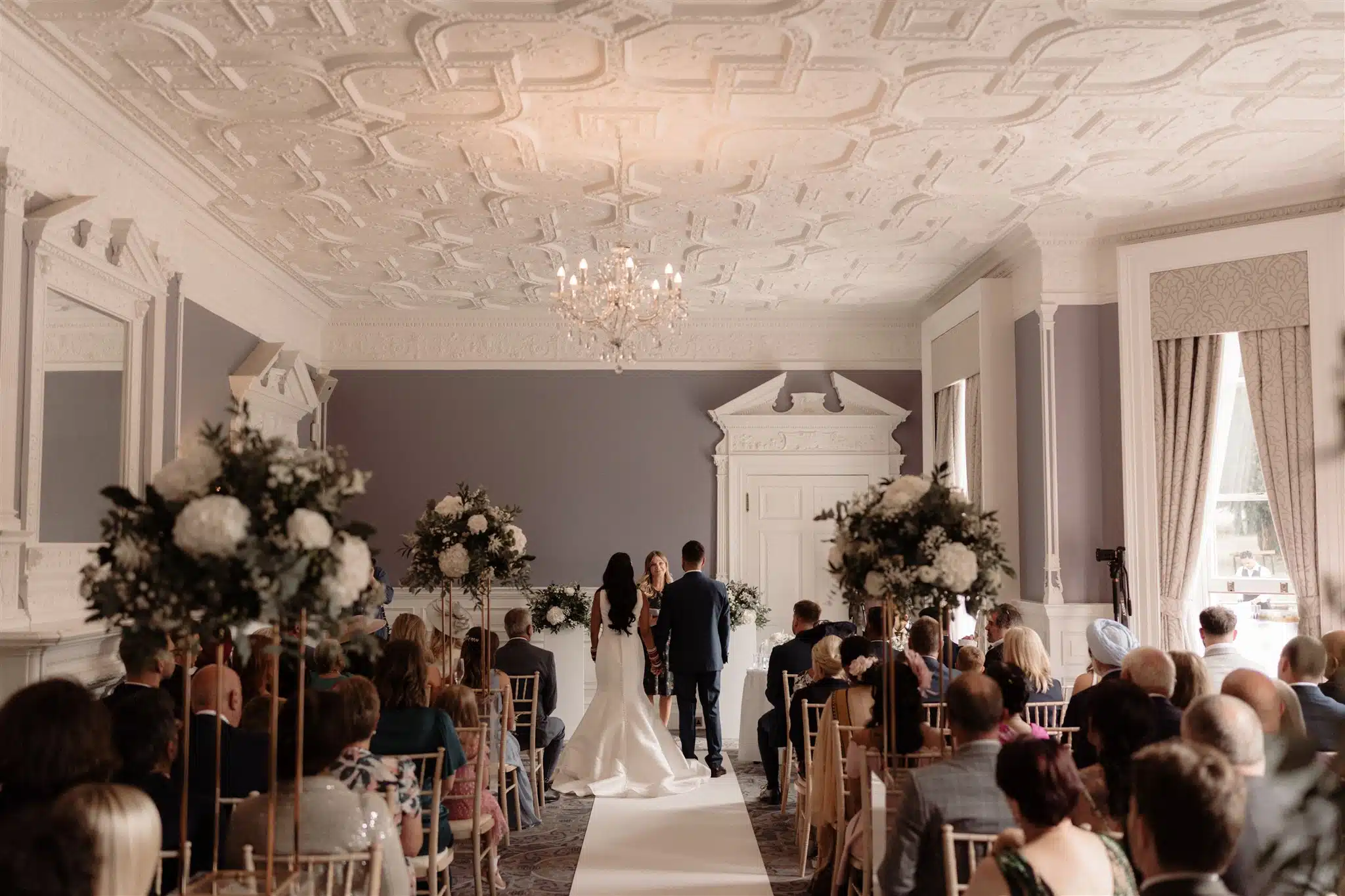 Whilst we recommend a minimum of 6 months so we can check availability and prepare your special day with plenty of time in advance, our skilled team are also more than happy to arrange short lead weddings at Oakley Hall. Please get in touch with our Wedding & Events team to find out more!